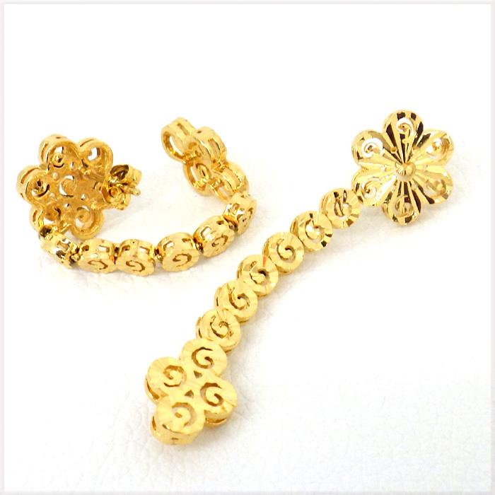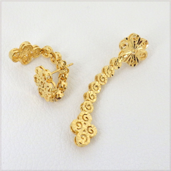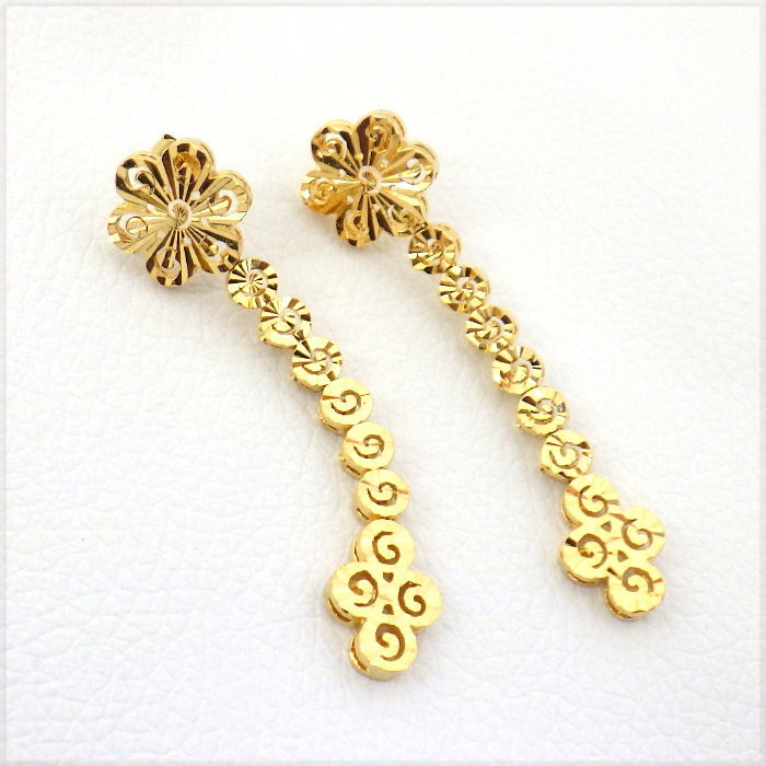 18K Gold Filled ハイクオリティ 放射線 カット デザイン ゴールド フラワー 渦巻ラウンドチャーム ダングルピアス です。