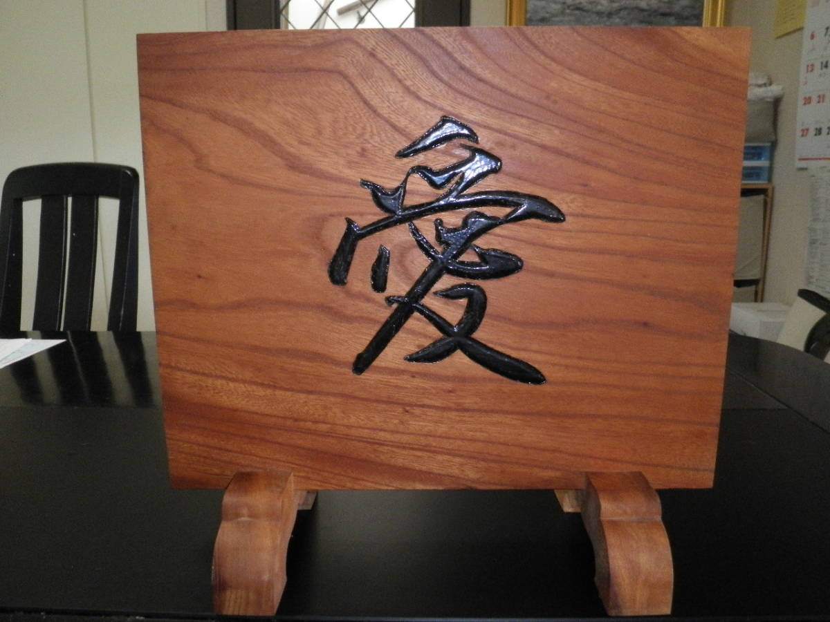 「愛」 横約303mm高さ283mm奥行き約136mm 彫刻 玄関 店のオブジェなどに 工芸品 展示品 中古品です。「愛」という文字を、板に掘られた物です。民芸店で、購入いたしました。※展示品の為、多少誇り汚れ等は、あります。ニス等で、塗装するとより良い物になると思います。繊細な方のご入札はご遠慮下さいませ。家の玄関、店のオブジェにどうでしょうか?