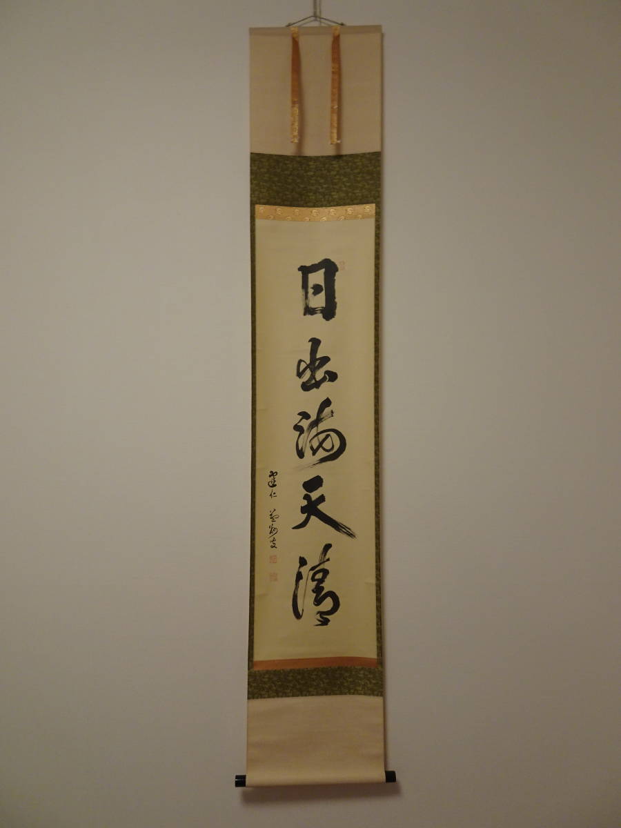 期間限定!◎◎利休kura茶道具RiQ蔵◎◎ 掛物 掛軸 / 「日出海天清」 建仁寺管長 竹田益州 一行書 / 共箱【真作・骨董・美品】