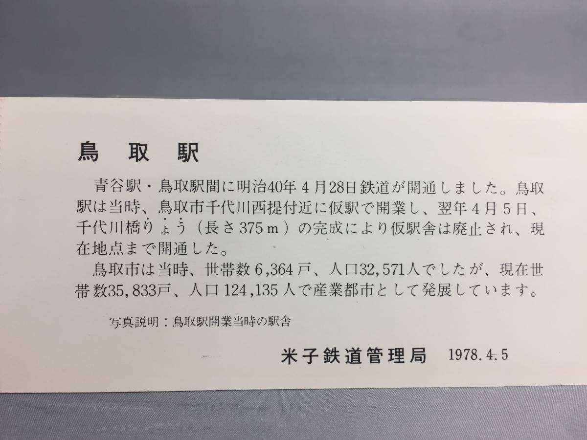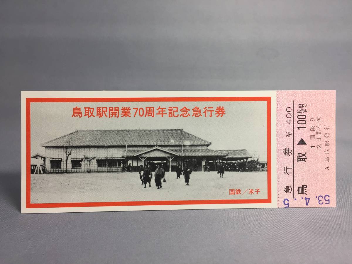 国鉄・米子鉄道管理局 昭和53年4月5日 鳥取駅開業70周年記念急行券 1枚 【K13-5394-2】