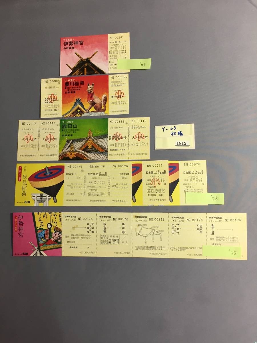 名鉄電車 ´71年・´75年 沿線社寺初詣記念乗車券 7枚 【Y03-1812】