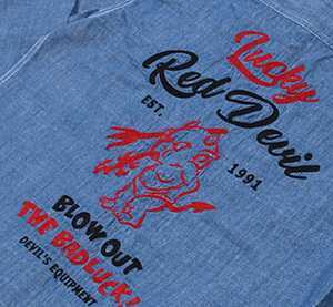 刺繍シャンブレーワークシャツ