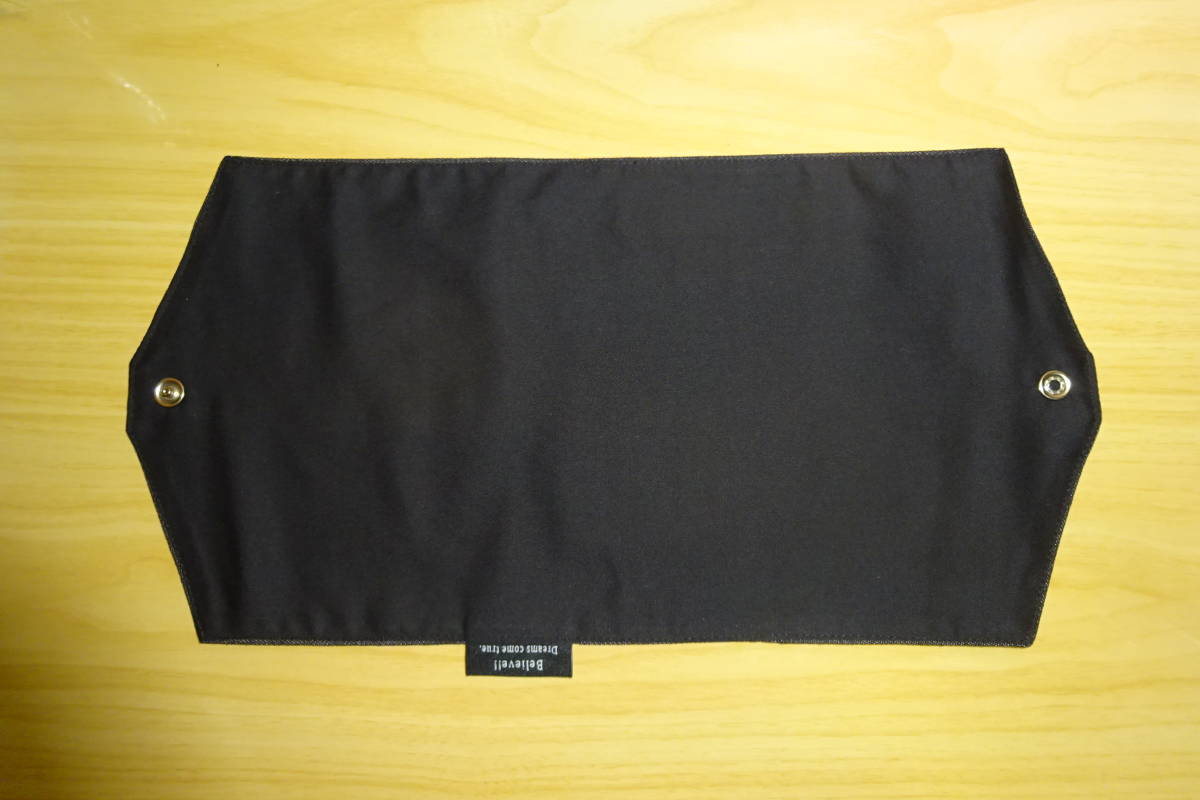 特大マスクケース 16.5×19㎝ デニム ブラック 幅広 ワイド フラットタイプ 刺繍タグ付き マスク入れ 仮置き ハンドメイド