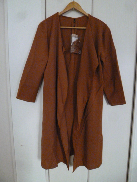 【新品】Clear/クリアー○くすんだオレンジ茶系ウエストリボンベルトロングガウンカーディガンF/ロングコーディガンF/コート○②Jk115
