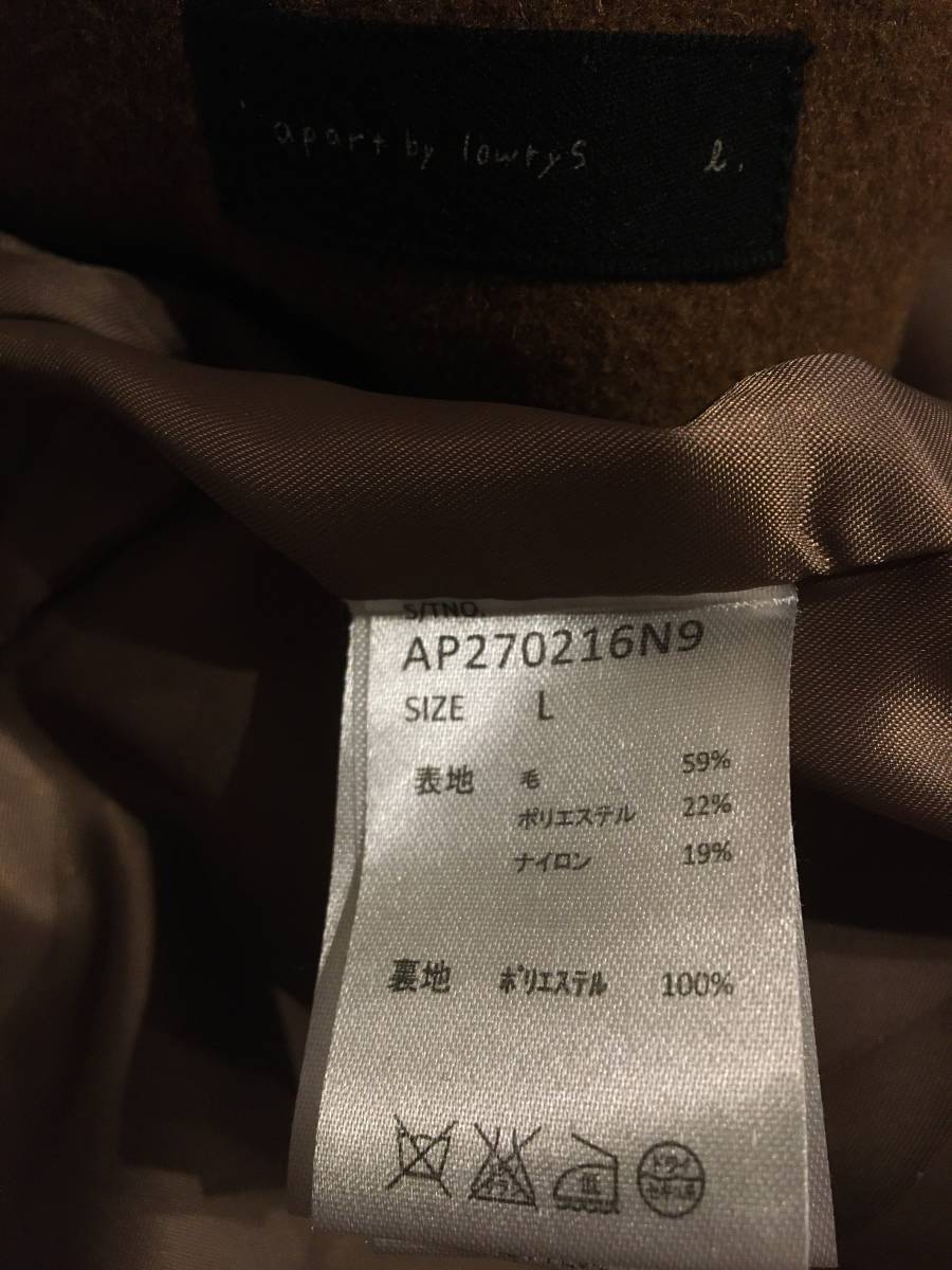 アパートバイローリーズ apart by lowrys ゆったり オーバーサイズ テーラード風 コート L ブラウン 茶色 です。