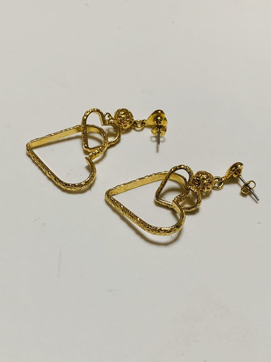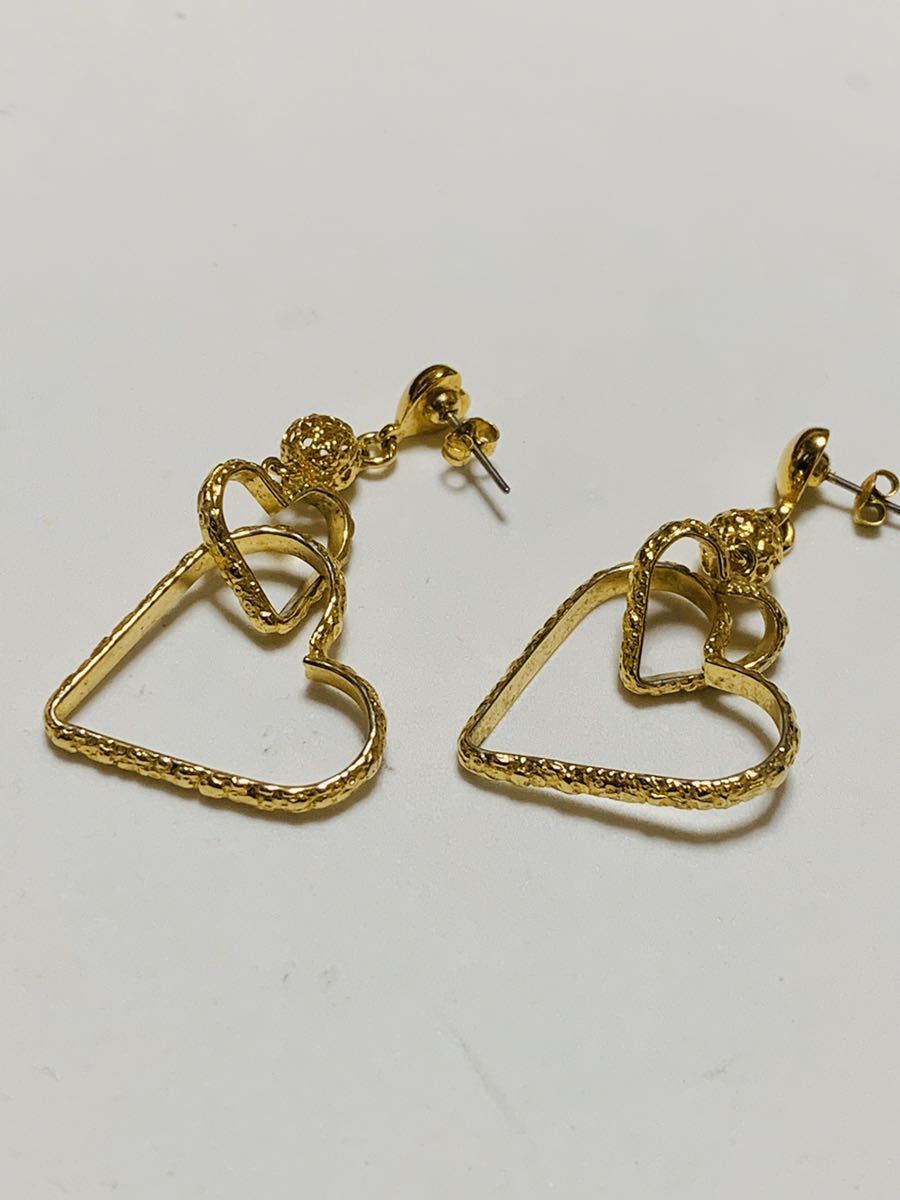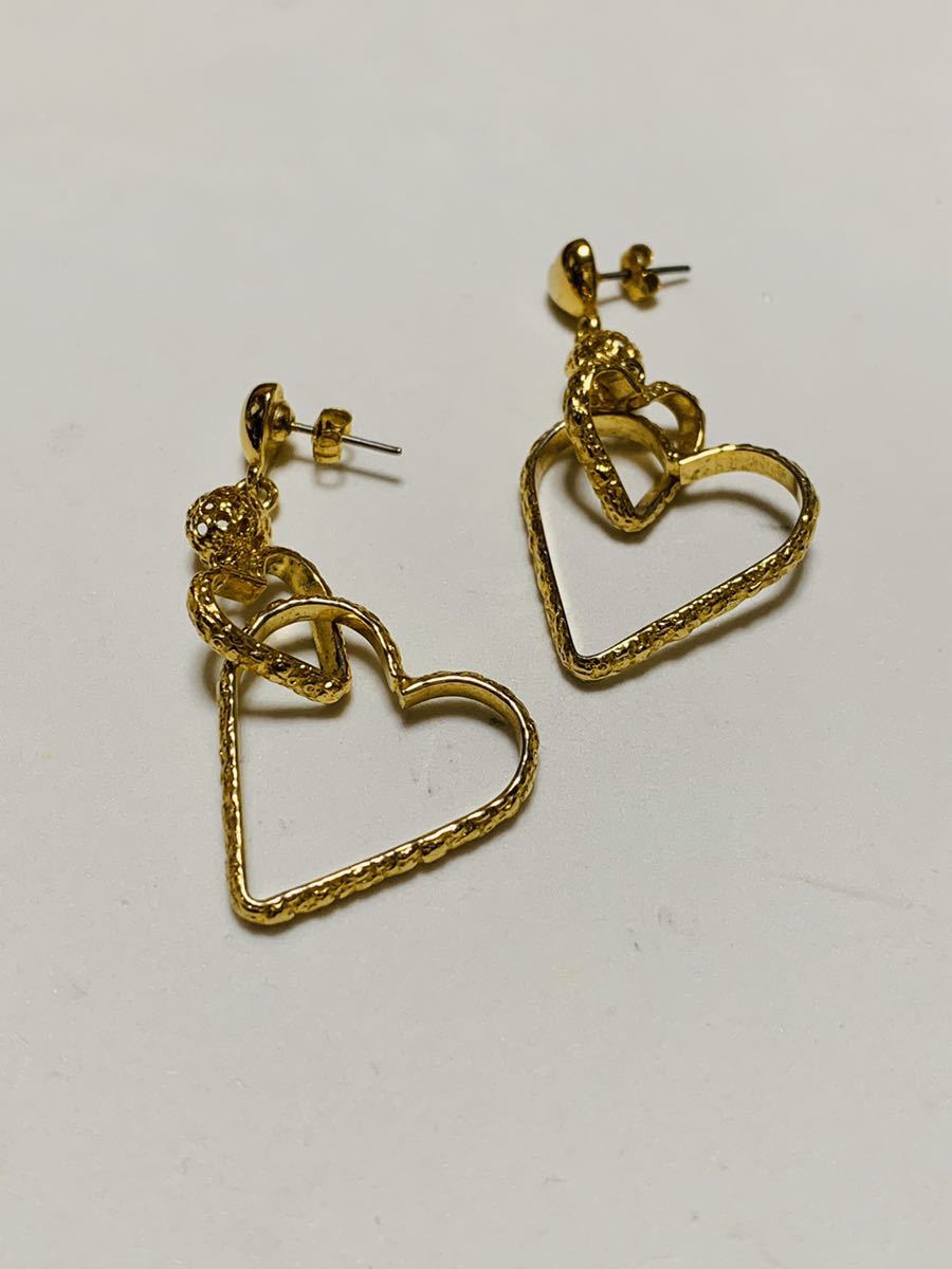 ゴールドカラー、ダブルピアスの、美しいイヤリングです、サイズは50×30ミリです