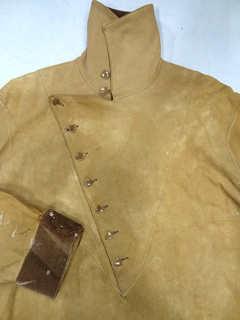 ブランドタグ等は欠損しています。もしくは当時のものにしても極めて珍しいデザインなのでオーダーメイドなどであった可能性もあると思います。画像をみておわかり頂ける通りミュージアムピースの希少なアイテムです。同じものはないと言えます。あっても遭遇することはないと思います。素材はヌバックで薄手なのでジャケットというよりはシャツという概念で作られたような印象を受けます。ボタンを見ても三角形のボタンなど見どころが満載です。ヴィンテージ好きな方なら間違いなく満足して頂けると思います。ヴィンテージの凄さが誰の目にも明らかに映る貴重すぎる一品です