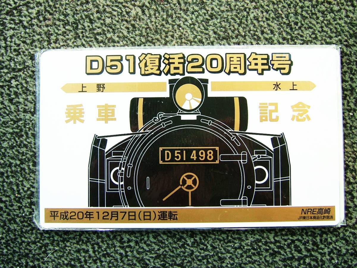 乗車記念サボ/D51復活20周年記念号 SL&EL奥利根