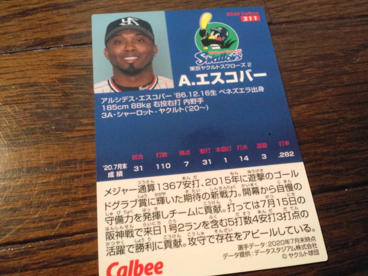 [同梱可]★A.エスコバー(東京ヤクルトスワローズ)★レギュラーカード(211)☆2020年カルビープロ野球カード第3弾