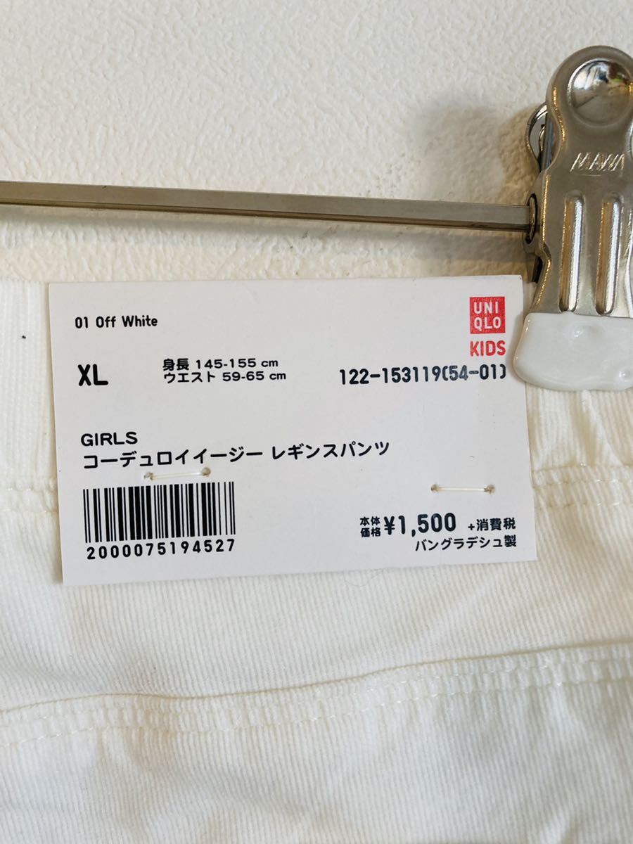 新品★ユニクロ GIRLS コーデュロイ イージー レギンス パンツ ホワイト 145~155   キッズ 女の子 XL 送料無料