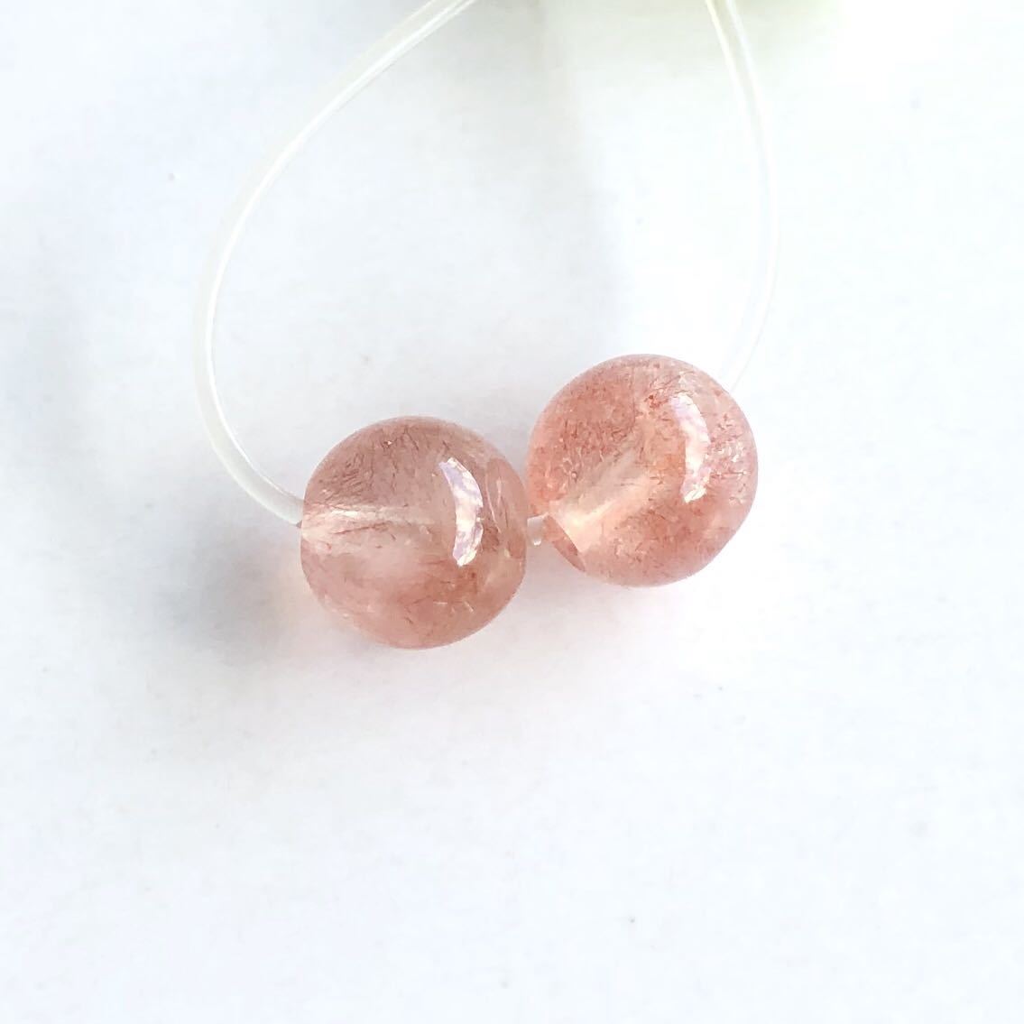 88 ロシア産ストロベリークォーツ粒売り2粒 7mmビーズ 苺水晶パワーストーン 稀少天然石 イチゴ水晶