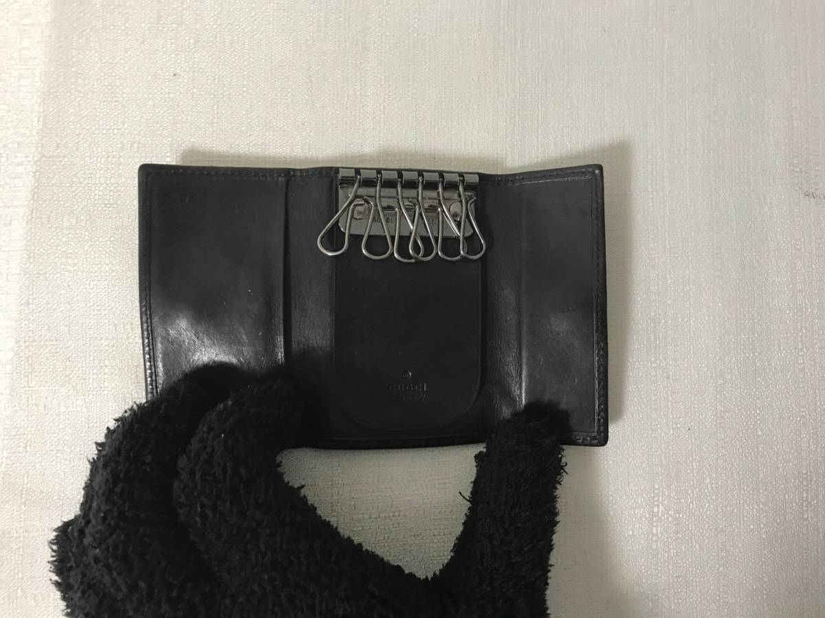 本物グッチGUCCI本革レザーG金具二つ折り6連キーケース鍵キーリング黒ブラックビジネスメンズレディース旅行トラベル