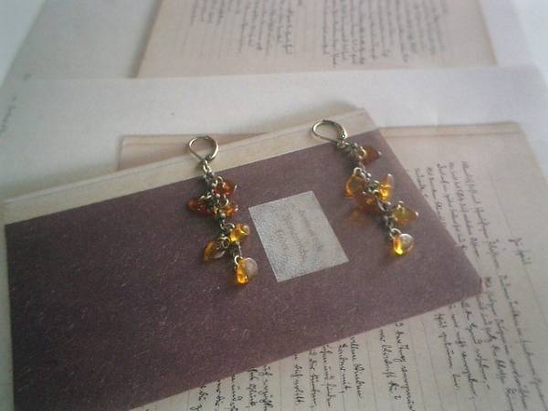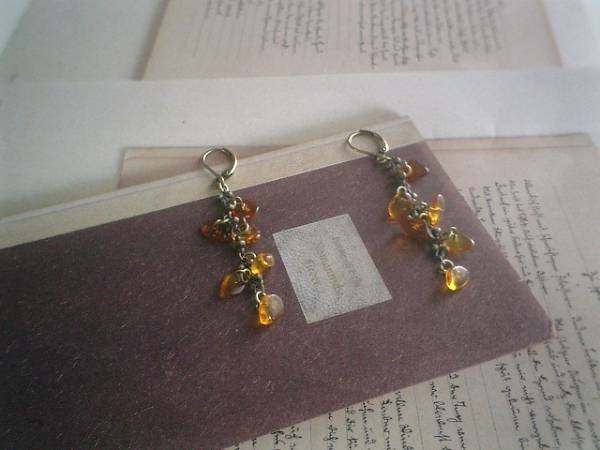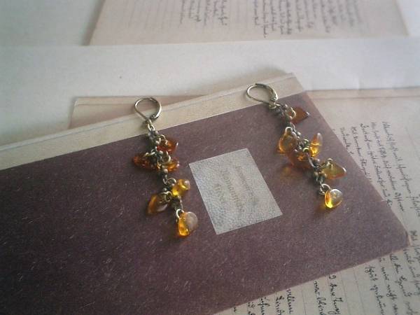 私らしさのスパイス・・シリーズです♪琥珀色に憧れて・・シックな琥珀のピアスです♪丸みを帯びた6ミリから10ミリ位までのタンブルの琥珀にデザインチェーンを合わせてノスタルジックな表情です♪長さは全長7センチ位です♪イヤリングにも変更出来ます♪お揃いのネックレスやブレスレットも出品しています♪シンプルで飽きのこないいつまでも着けられるデザインを考えて作りました!ハンドメイドをご理解頂いてノークレーム、ノーリターンでお願いします
