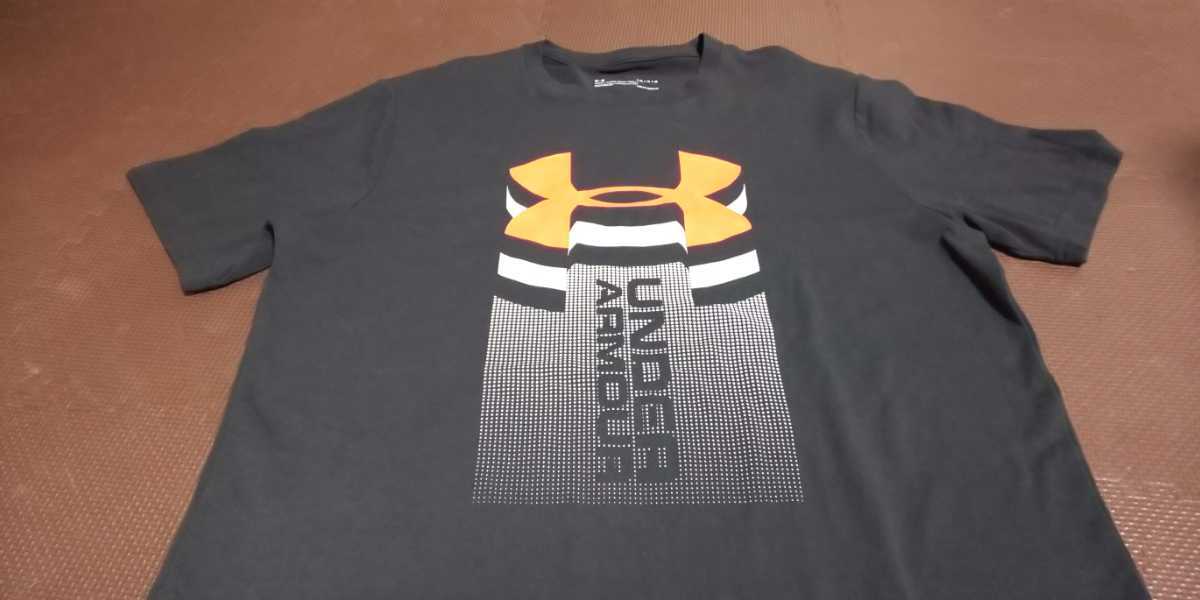 美品UNDERARMOUR黒、蛍光色オレンジ、グレー半袖ストレッチトップス