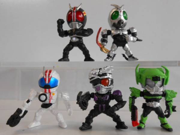 1.仮面ライダーBLACKブラック 2.シャドームーン 3.仮面ライダードライブ タイプテクニック 4.魔進テェイサー 5.仮面ライダーマッハ ◇ジョイント機構による多彩なポージング 新たな可動構造、3D設計による精密造形! |