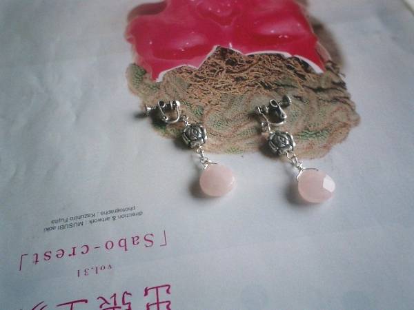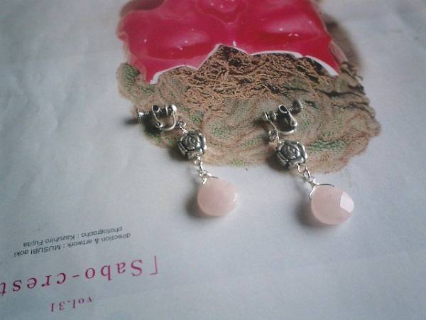 やさしい春に・・シリーズです♪ローズクォーツと薔薇・・淡いピンクがロマンチックなイヤリングです♪ペア1組です♪13ミリのマロンカットのローズクォーツにアートっぽい薔薇のデザインチャームを合わせました♪♪長さは全長5センチ位です♪♪ピアスにも変更出来ます♪お揃いのネックレスやブレスレットも出品しています♪シンプルで飽きのこないいつまでも着けられるデザインを考えて作りました!ハンドメイドをご理解頂いてノークレーム、ノーリターンでお願いします