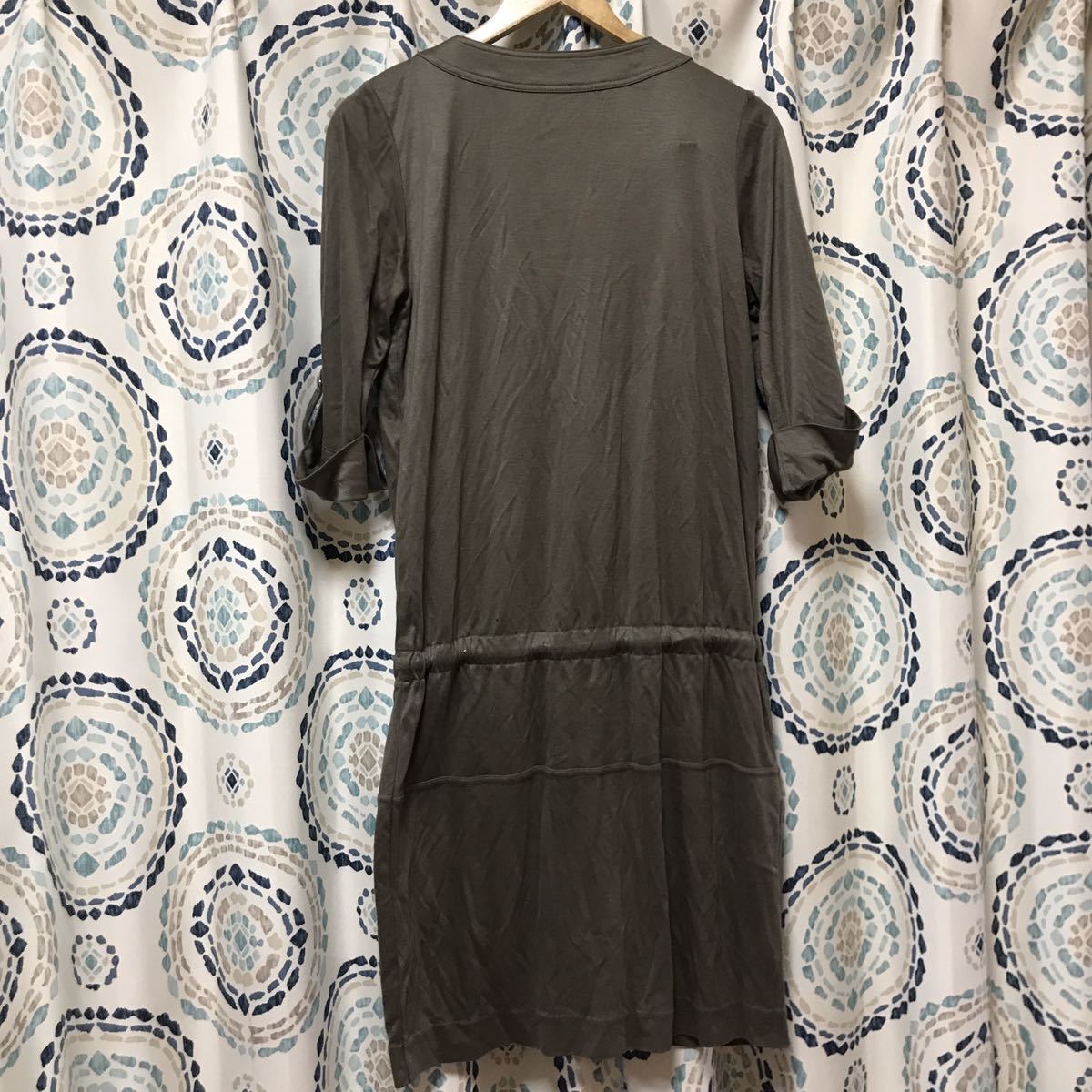 ◆カットソーの様な質感なのでデイリーに着やすい七分袖ワンピース♪ウエストリボンでブラウジングするとまた違ったシルエットが素敵です