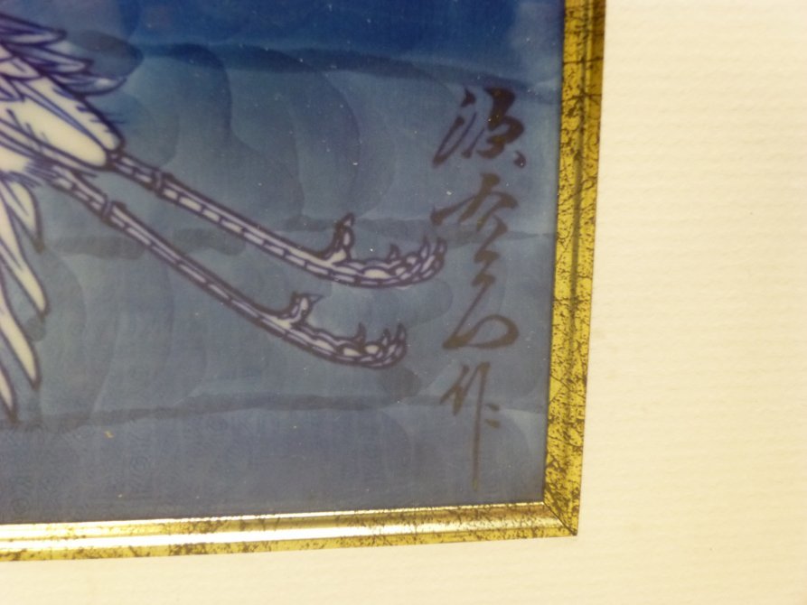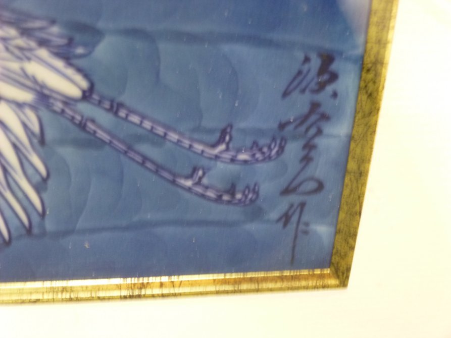 ■大阪 堺市 引き取り歓迎!■陶器 額 鶴2羽 35cm×35cm 焼き物 壁飾り タペストリー KAWACHI 画材 絵■