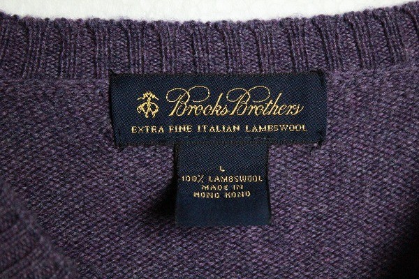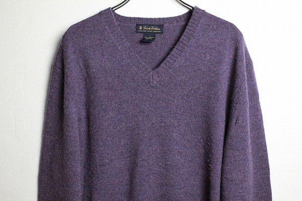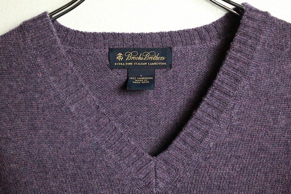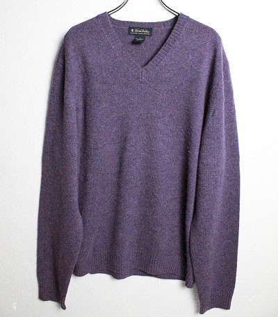 ブルックスブラザーズ Vネック ウール ニットセーター 紫系 (L) ラムウール BROOKS BROTHERS