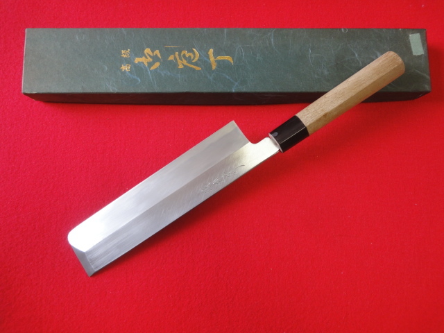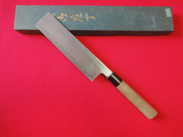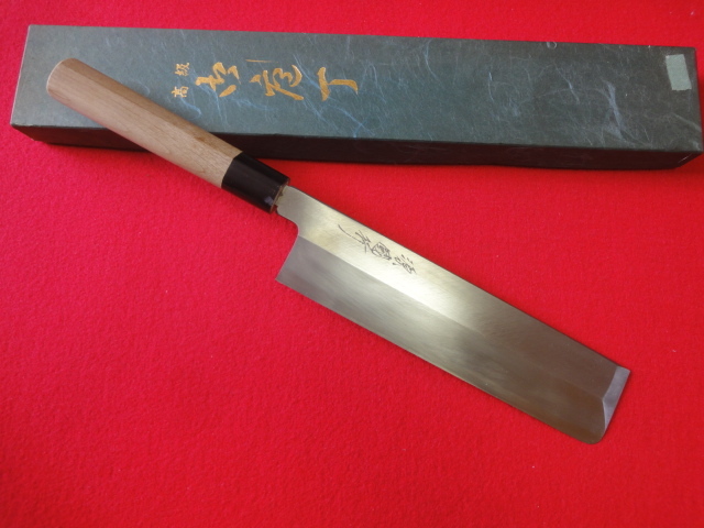 【源國行】薄刃包丁 刃渡21㎝ 全長37.5㎝ 峰厚4.3㎜ 片刃 ※箱付 ※中古品 ※全国一律送料1100円
