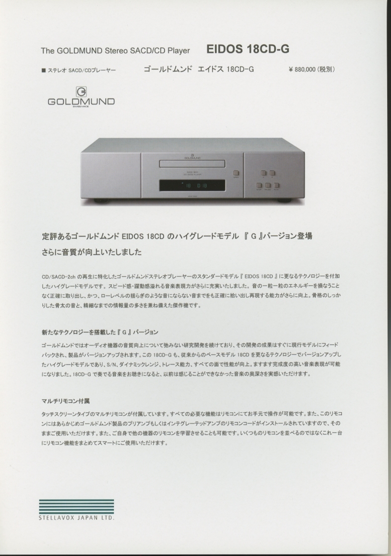 Goldmund EIDOS 18CD-Gのカタログ ゴールドムンド 管1476s