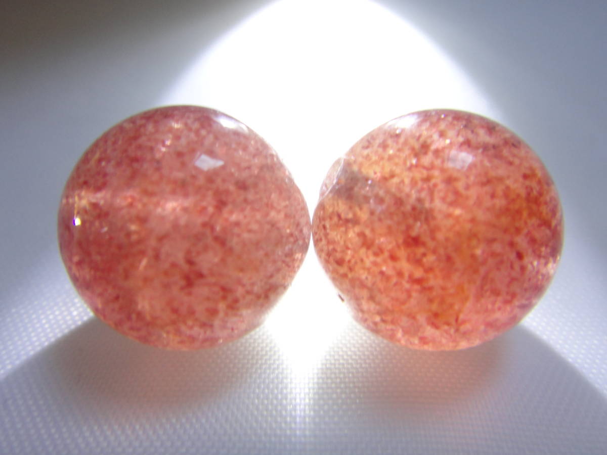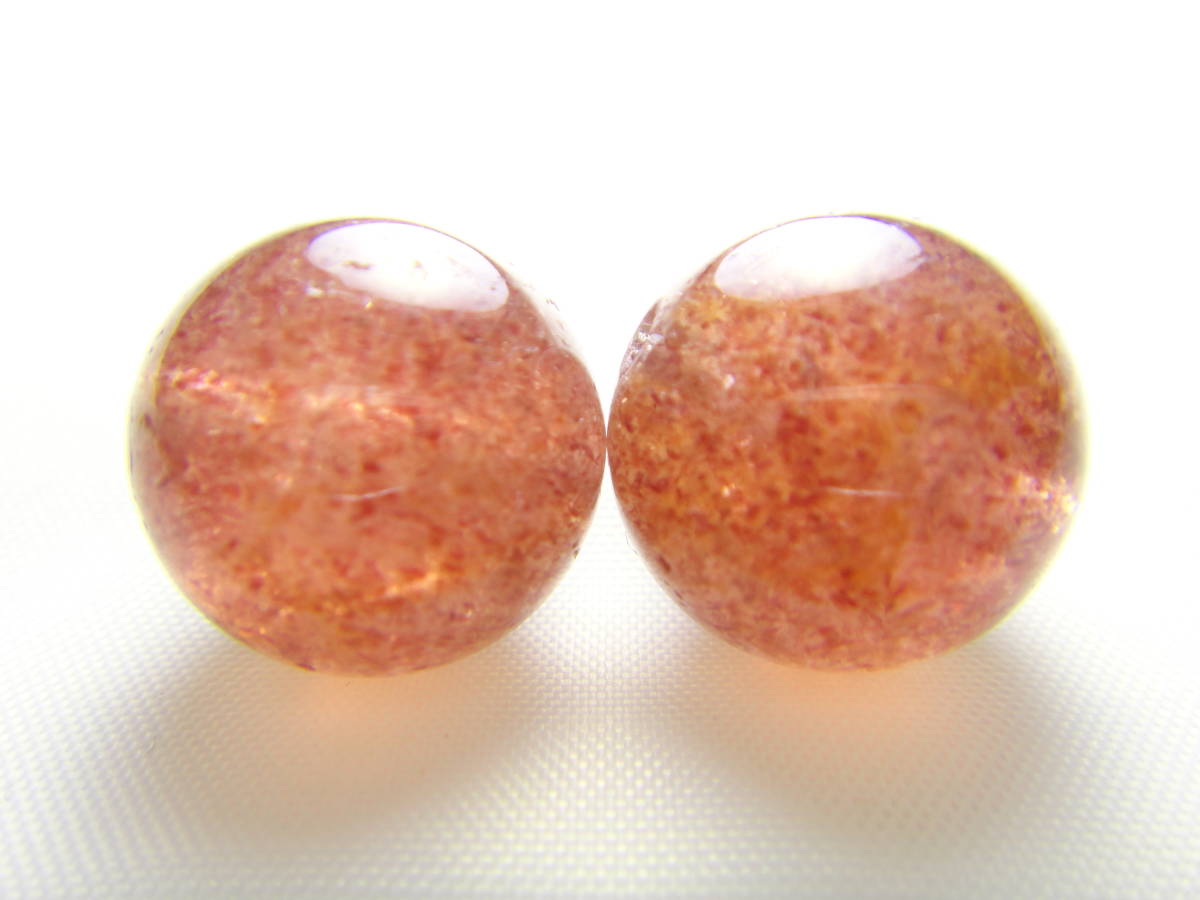 天然石 美! 高品質! ストロベリークォーツ 約12.5㎜玉 2個セット A766
