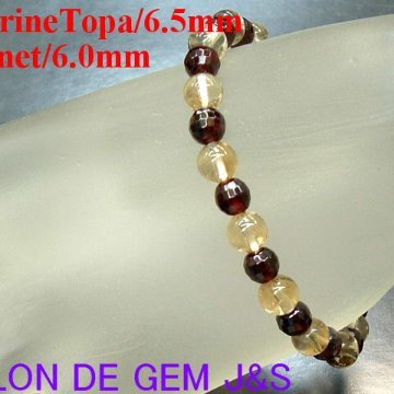 【新品】【高級天然シトリントパーズ/天然ガーネット デザインブレスレット】6.5-6.0mm/16cm