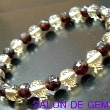 ●透明感のあるシトリンと128面カットで濃いワインカラーのガーネットがとても耀きのあるブレスレットです。