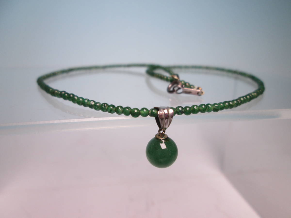☆SILVER グリーンクォーツ 翡翠?のペンダントネックレス ケース付
