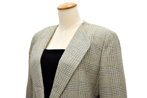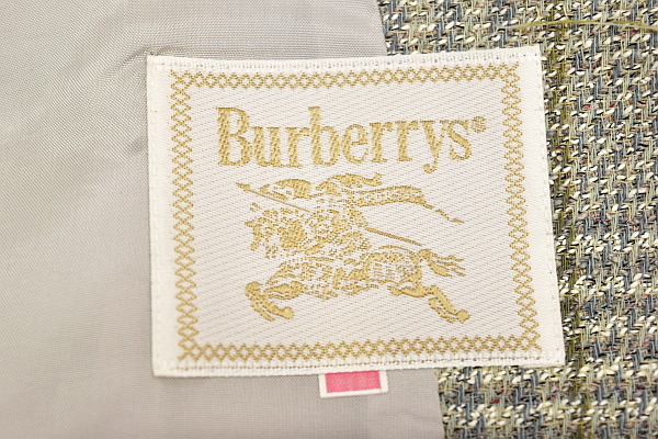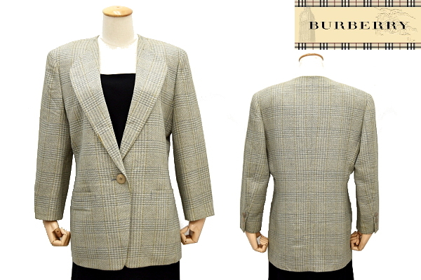 L-1109★送料無料★Burberrys バーバリー★春秋冬 国内正規品 グレーチェック柄 ウール×リネン ツイード ジャケット 11号