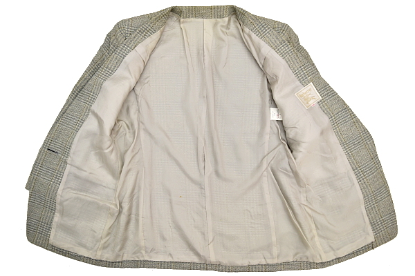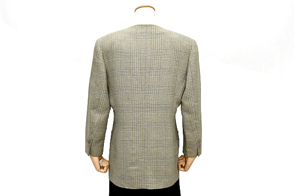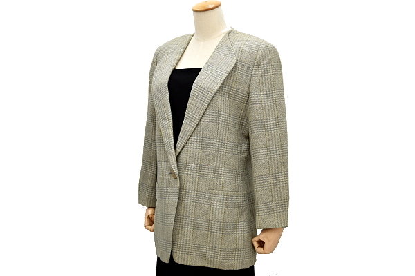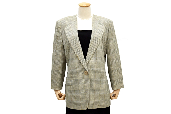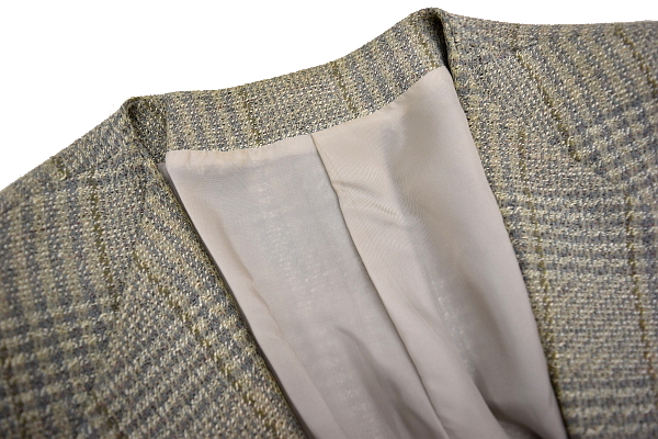 チェック柄 1つボタン 少しグリーンがかったグレーカラー