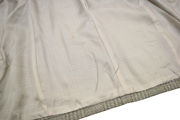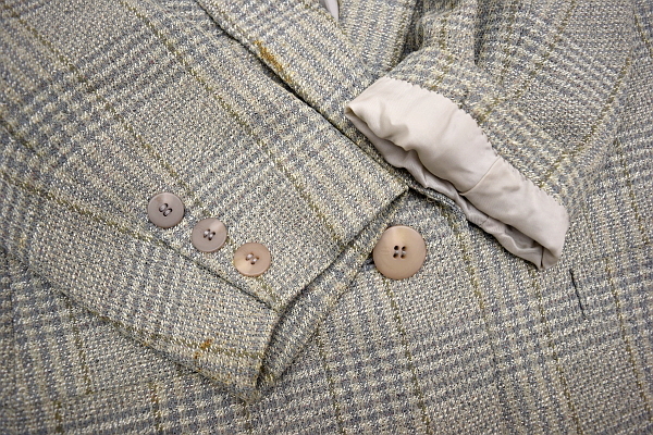 裏地とボタン上と右袖に汚れが見られ、両袖の折り返しに変色が見られます(画像でも解らない程度かと思います。)。