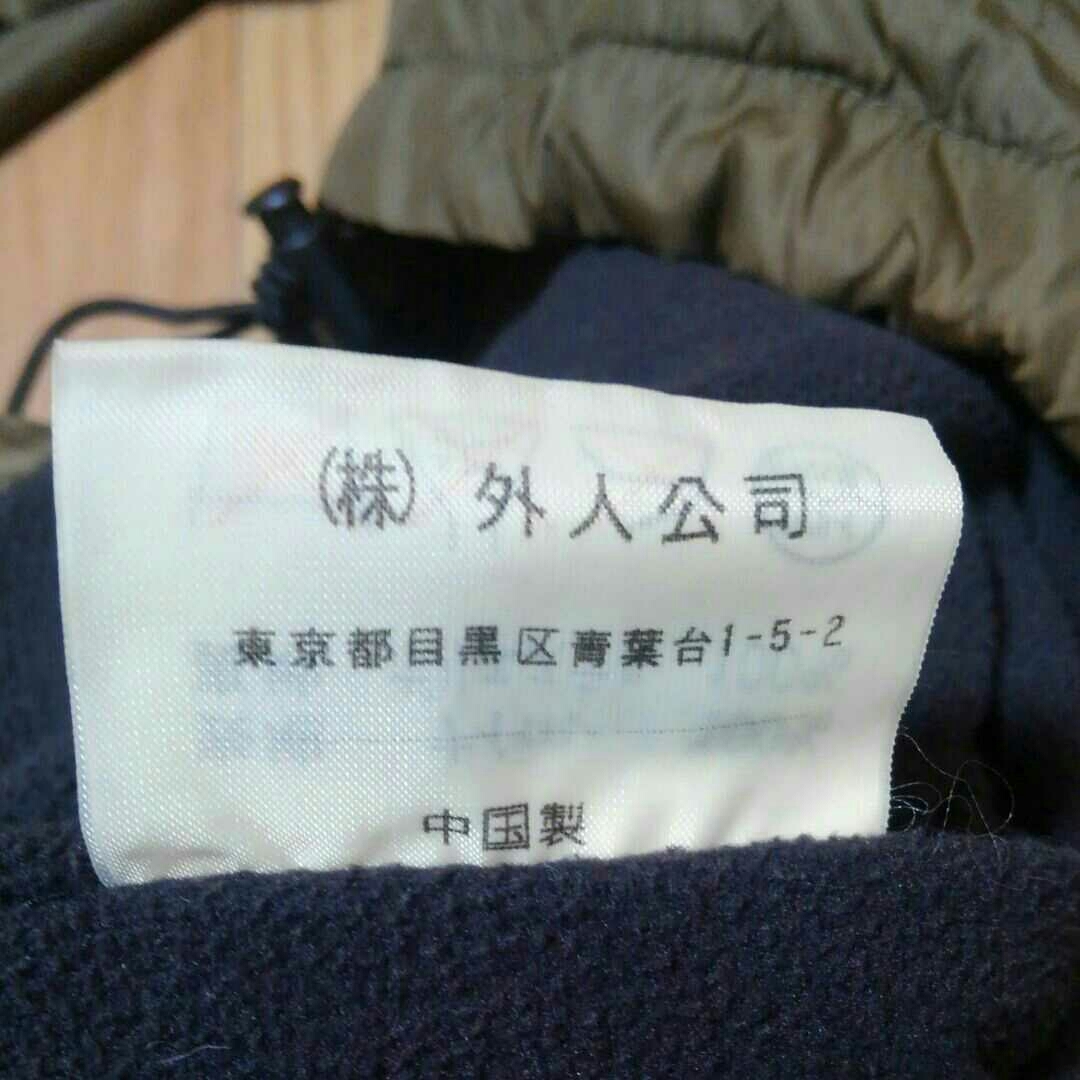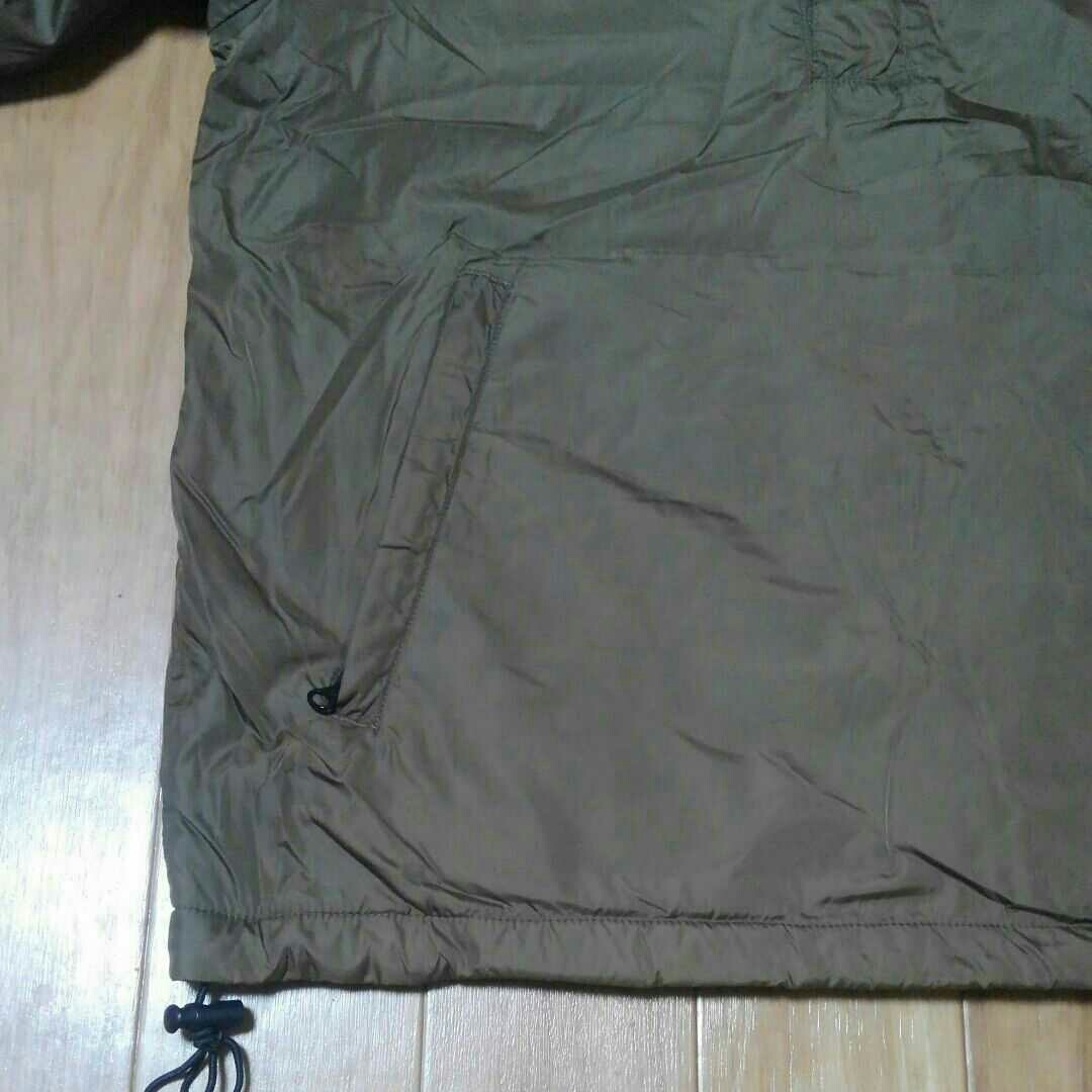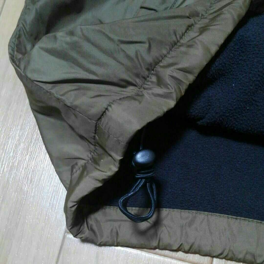 色は カーキ、中綿入り、裏地はフリース、裾にドローコード、シンプルでかっこいいです。