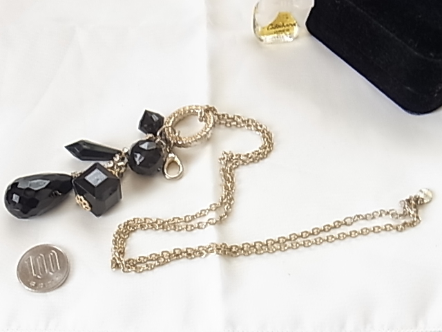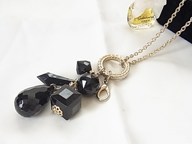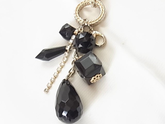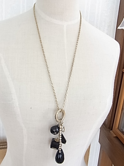 ブラックカラーのストーン調 様々な形状 ラインストーンも輝く ショップブランド刻印あり ロングネックレス◆◆