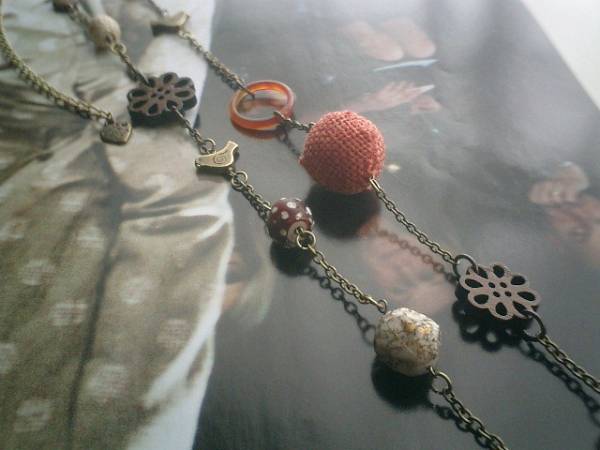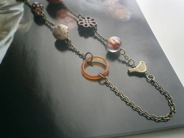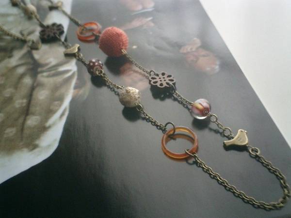 ニューヨーク・デッサンシリーズです♪キュートな小鳥さんと異素材のネックレスです♪♪シックなお色でまとめて大人のロマンチックしています♪10ミリから22ミリ位までのブラウンシェルやカーネリアンのリング、小鳥さんのチャームや水玉のトンボ玉、ヴィンテージビーズ、18ミリ、22ミリの大きさ違いのウッドの透かしフラワー、麻ボール、編みボールなどキュートな異素材を集めてニューヨークモダンしています♪長さは全長105センチ位で調節自由です♪2連にされても素敵です♪お揃いのネックレスやブレスレットやピアスも出品しています♪シンプルで飽きのこないいつまでも着けられるデザインを考えて作りました!ハンドメイドをご理解頂いてノークレーム、ノーリターンでお願いします