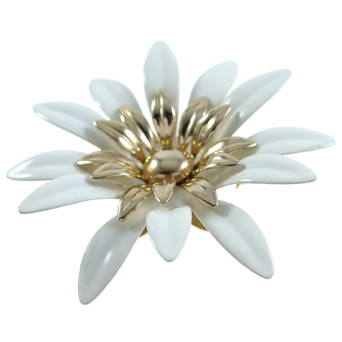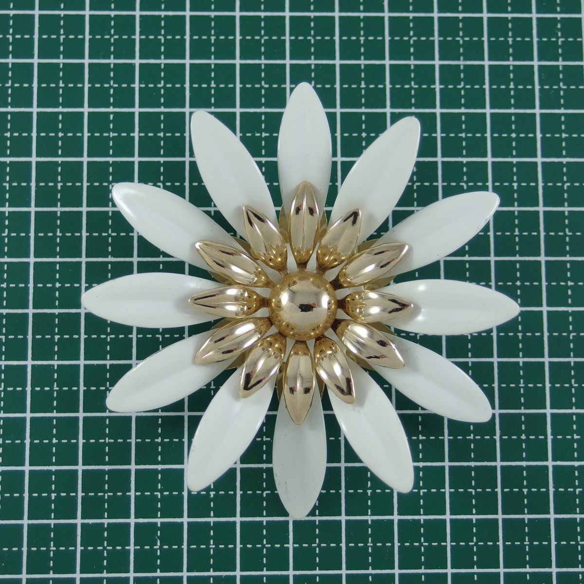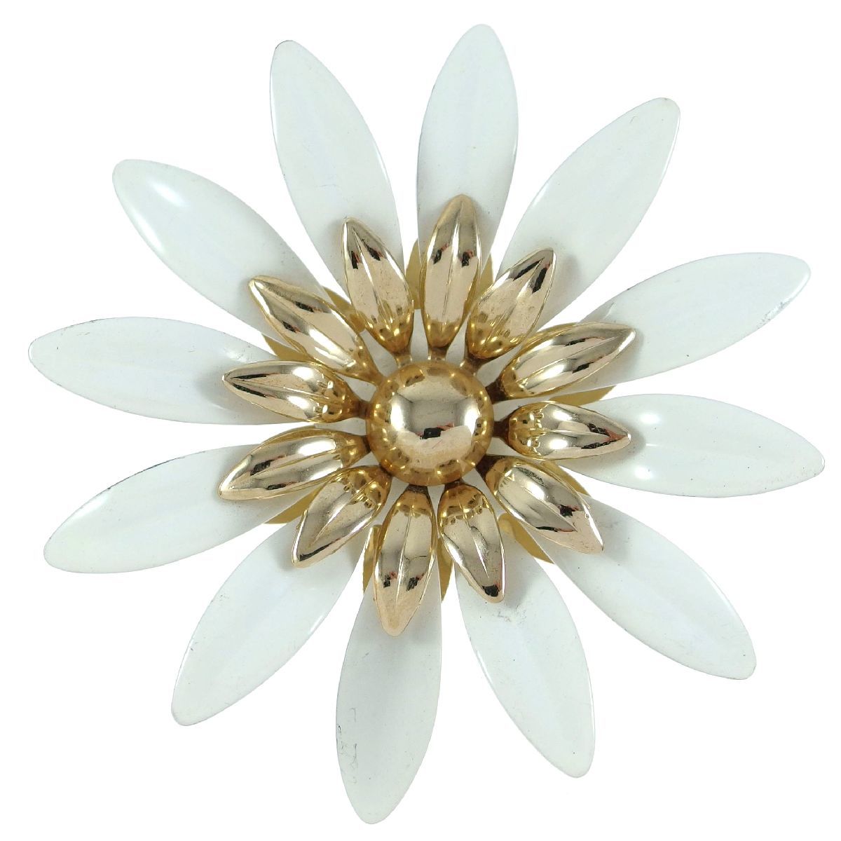 A4687◆【SARAH COVENTRY】 ◆ 大型 * ホワイト&ゴールドの花 * フラワーモチーフ ◆ ヴィンテージブローチ ◆