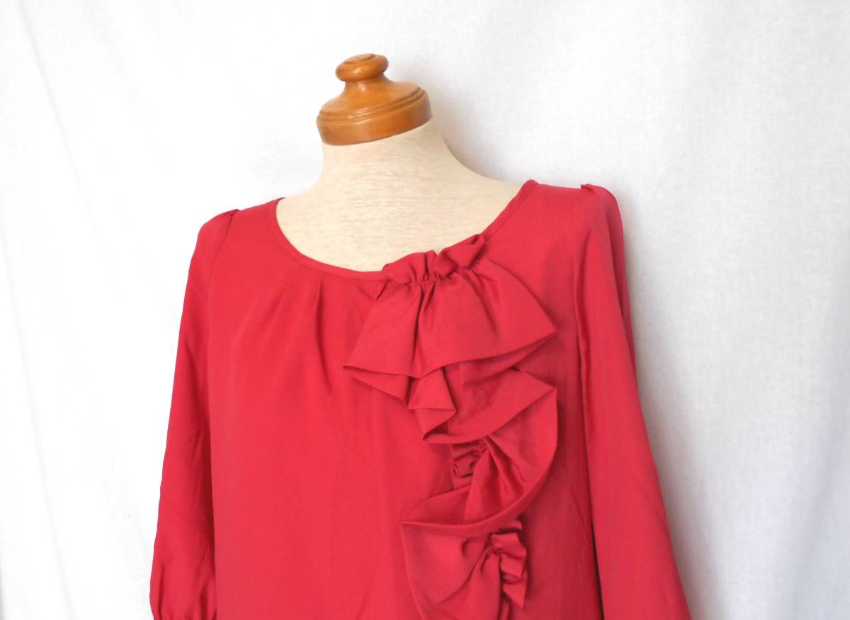 胸元のフリルがさりげなくアクセントになる上品な華やかさのある1枚です。 | ||