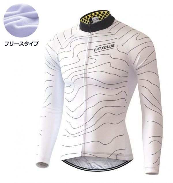 新品 長袖 裏起毛 サイクルジャージ No7 XLサイズ ホワイト フルジップ ウェア メンズ サイクリング フリース ロードバイク MTB