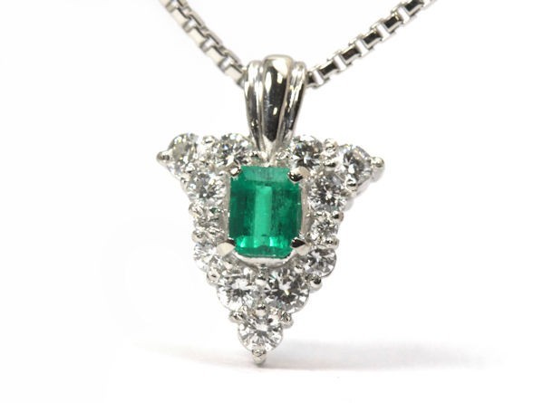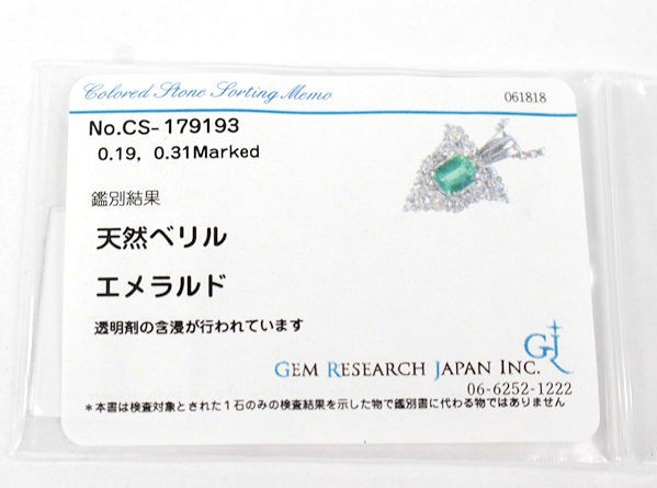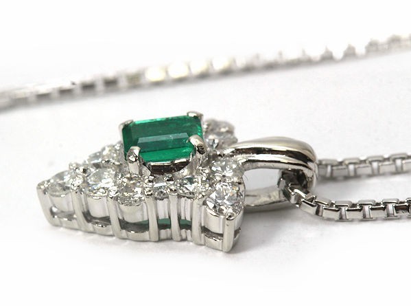エメラルド&ダイヤモンドネックレス 0.19/0.31ct Pt850/900 ソーティング付き!■01432