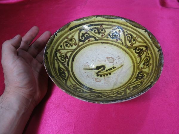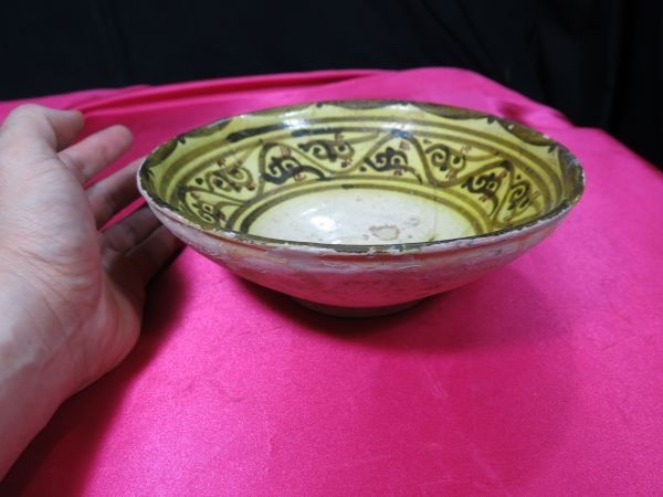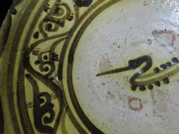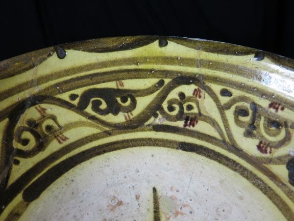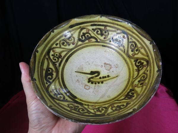 ③ イスラム黄釉文様皿 陶器 施釉 釉薬 遺跡発掘品 ペルシャ
