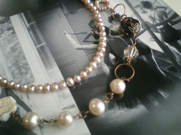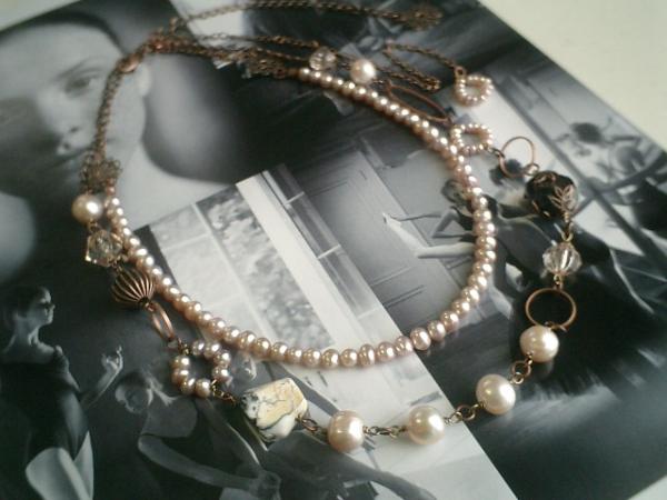 パリの屋根裏部屋シリーズです♪宝石箱をイメージして作りました♪シックなモーブピンクの淡水パールと深い赤のガーネットのネックレス2本セットです♪シックなモーブピンクでちょっと華やかにまとめました♪淡水パールは8ミリから9ミリのポテトで座金でおめかしした13×17ミリのガーネットのタンブルやデンドライトアゲートやパールリングやデザイン樹脂ビーズを合わせてシックにまとめました♪大人のロマンチックしています♪長さは全長60センチ位で調節自由です♪チョーカー風にしてもブレスにしても可愛いです♪シンプルなデザインの淡水パールは5ミリ位のポテトです♪シックなデザインチャームと合わせてアンティークな雰囲気です♪長さは全長55センチ位で調節自由です♪チョーカー風にしたりブレスにしても可愛いです♪どちらもパリの屋根裏部屋をイメージして作りました♪シンプルで飽きのこないいつまでも着けられるデザインを考えて作りました!こちらは長いデザインでも出品しています♪ハンドメイドをご理解頂いてノークレーム、ノーリターンでお願いします