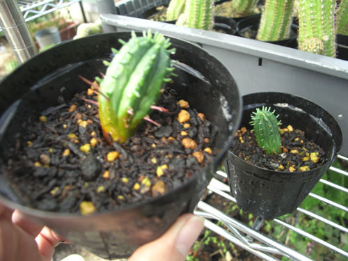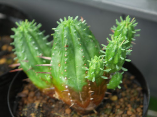 即落,送料込み・ハニワの様な形に子供が伸びるサボテン子株一つ