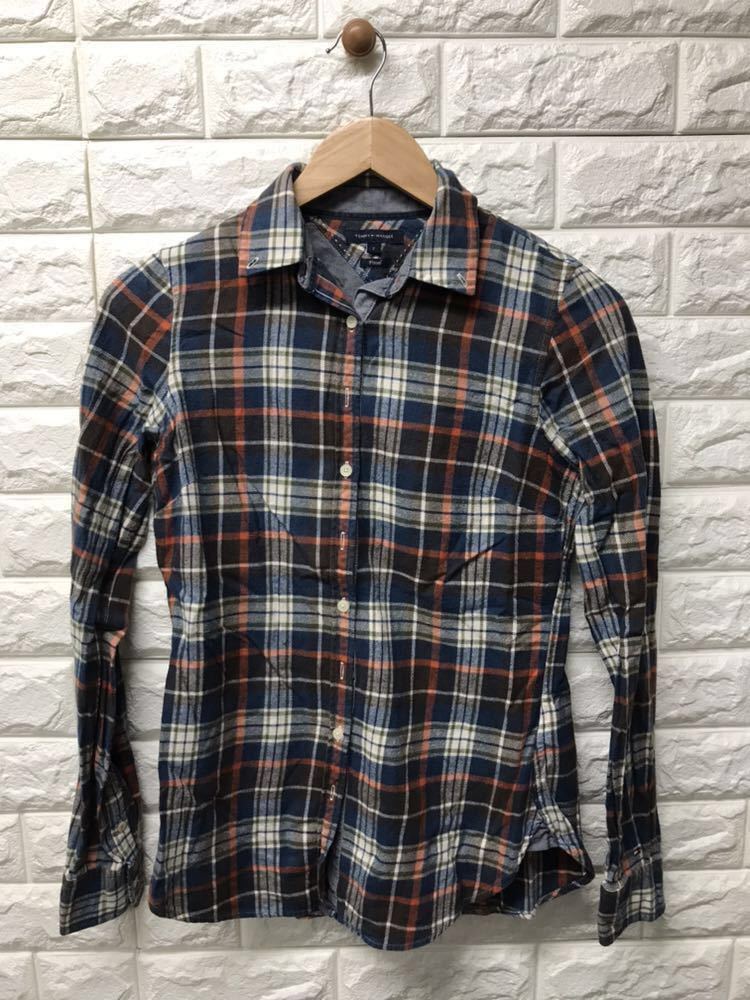 l-065 TOMMY HILFIGER ■トミー ヒルヒィガー トップス 長袖チェックシャツ ■レッド系 身幅:36 着丈:64 ■ゆうパケお手軽210