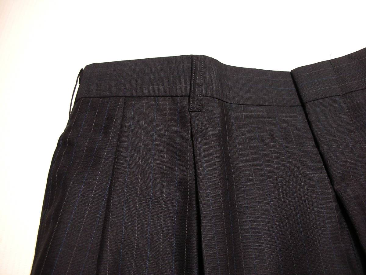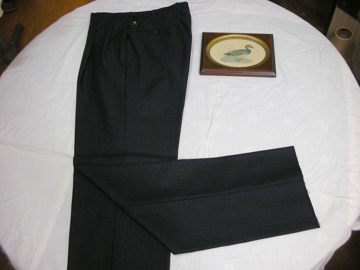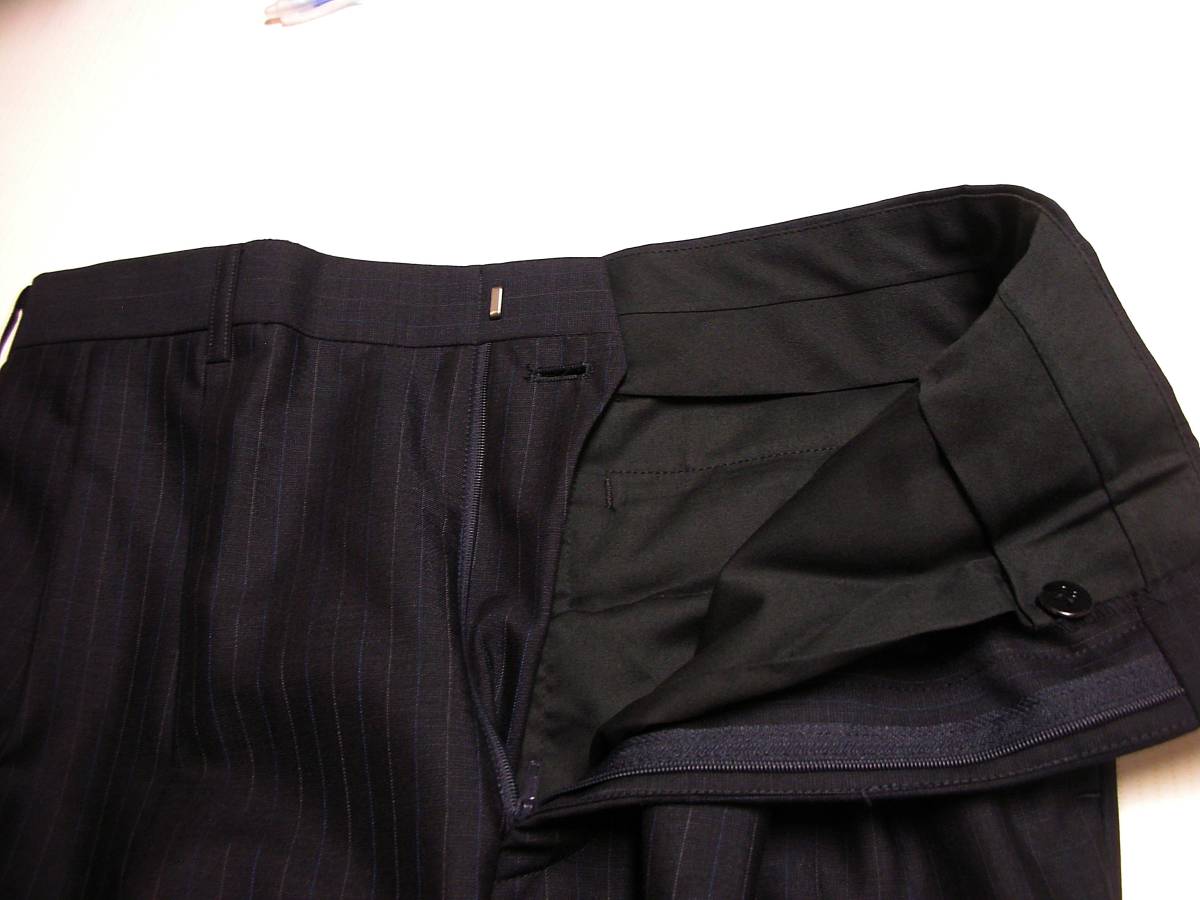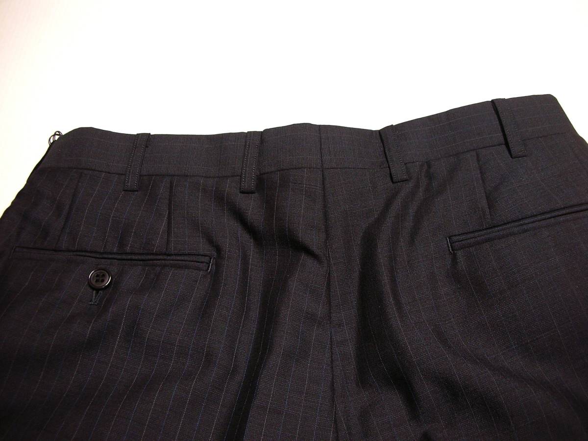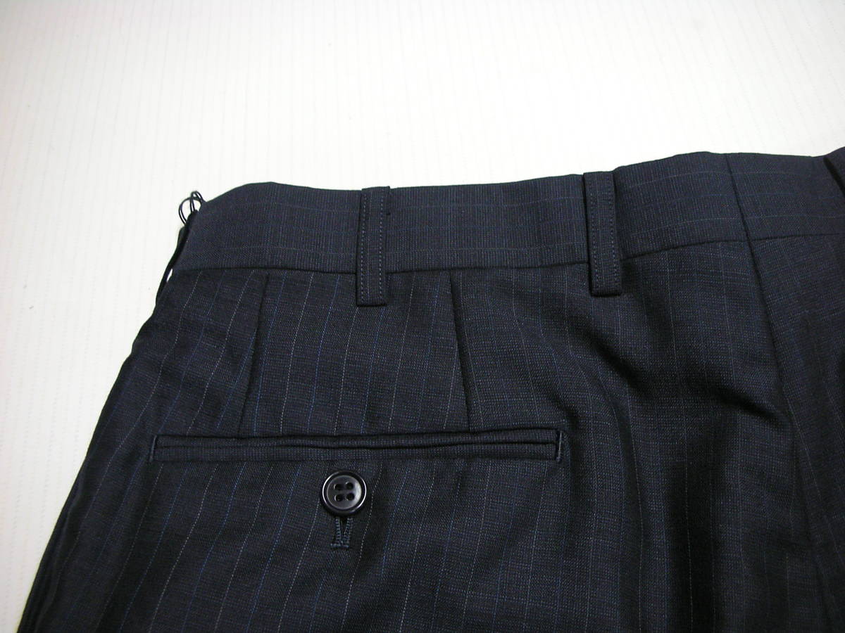| 商品説明 | サイズ: 81cm (AB3 チェスト 92 胴囲 82 身長 160 スーツ外しパンツ) 平置実測採寸: ウエスト:81cm 渡り幅: 34,5cm 腿幅(股下 10cmの所): 31cm 裾幅: 22cm 前股上: 28cm 股下(フリー状態): 85,5cm 色: ネイビーブラック black (ほぼ黒) 0,9mm間隔の ブルー&グレー色ドットペンシルストライプ柄 状態: 新品素材:毛 73% モヘア 17% ポリエステル 10%日本製 スーツ外しの贅沢縫製パンツ。0,9mm間隔のブルー&グレー色ドットペンシルストライプ柄。生地は春夏 サラっとした薄地 モヘア混のすぐれもの。 はき易いタック有りのツータックスタイルです。 |