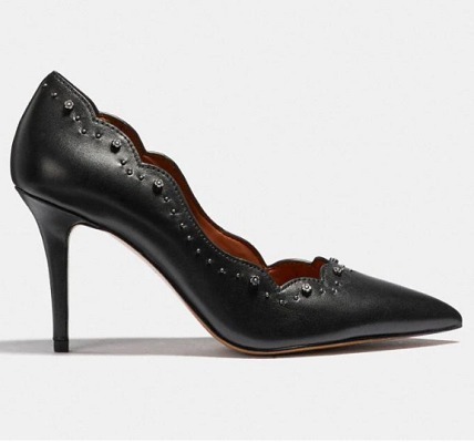 女性らしさを高めるエレガントなフォルムが魅力的なパンプス。上質レザーを使用しスキャロップエッジと小さなお花デザインがエレガント。