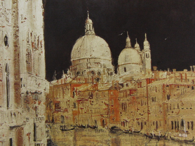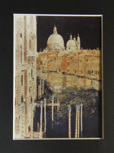 飯田史朗、【ベニス陽光】、希少な額装用画集より、新品額装付、状態良好、送料込み