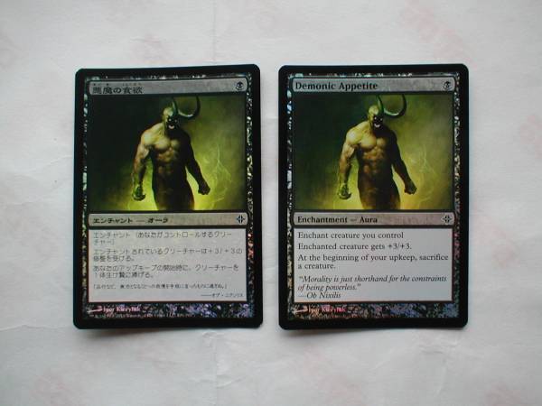 B知人の委託品です。 画像が全てです。 MTG 悪魔の食欲/Demonic Appetite foil 日本語3枚、英語1枚です。 何語だか分らない時があります。 エキスパンション、外国語(言葉)は画像で確認をお願いします。 カードはプレイしています。 プレイ後、カードはスリーブから出してストレンジボックスの中で保管していました。 カードに目立つ擦り傷、キズ、ペン跡のようなキズ、汚れ、角や端に傷、黒枠にキズ、などのキズが結構あります。 スリーブに入れないでストレンジボックスに保管してたので擦り傷が沢山あります。 カードからタバコや香水の匂いがします。 カードが大きく丸まっていたり反ってたりしています。 気が付かない部分がありますので程度を気にする方は入札をご遠慮下さい。 程度はジャンクです。 コレクションには向きません。 何か起きた場合には自分では対応が出来ませんのでご理解頂ける方のみ入札をお願いします。 普通郵便、クロネコメール便で発送します。 郵便事故や郵便破損が起きた場合には保障できません。 ノ-クレーム、ノーリターンでお願いします。 (2015年 1月 26日 19時 11分 追加) クロネコメール便は2015/3/31で発送が出来なくなります。ご了承下さい。