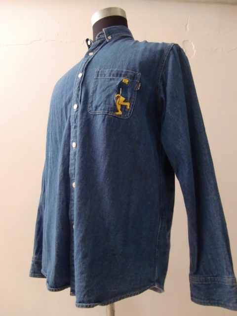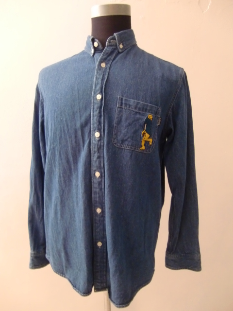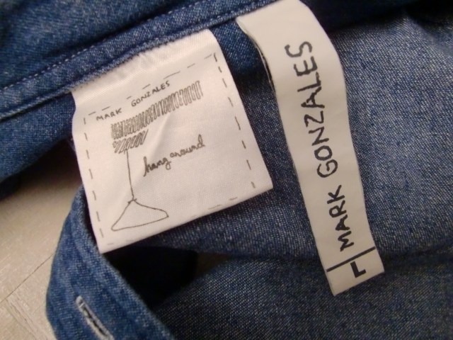 送料無料 Mark Gonzales マークゴンザレス ボタンダウン デニム シャツ L 刺繍 ワーク スケート SK-8