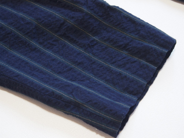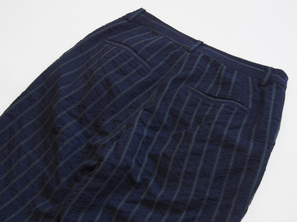 表情のあるシアサッカー生地のクロップドパンツです。 落ち着いたストライプ柄でトップスによって印象を変わる着回しのきくアイテムです。