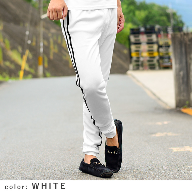 サイドのラインは美脚効果を演出し、裾が絞れたジョガーパンツタイプとなっており、